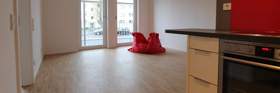 – Großzügig geschnittener ca. 24 m² großer Wohnraum mit offener Küchenecke, sehr hell durch bodentiefe Fensterflächen